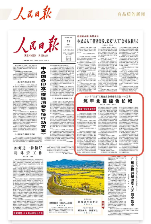 人民日報頭版文章:筑牢北疆綠色長城(“兩重”建設扎實推進)