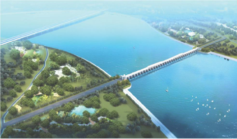 37座閘墩立于水面之上,每個閘墩長35米、高10.5米,遠遠望去,一座“攔水壩”已然成型。