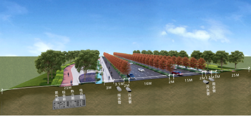 地下綜合管廊采用四艙設計,不僅能實現(xiàn)供氣、供熱、供水及電力通訊等管線集納,為今后的管線布設、維修提供接入口,避免出現(xiàn)“拉鏈路”、“蜘蛛網(wǎng)”的問題。同時,通過外掛雨污排水管道,在提升區(qū)域供水能力的基礎上,還能實現(xiàn)區(qū)域污水全收集。