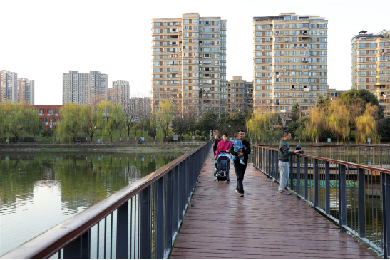 居民在園區(qū)內(nèi)娛樂休閑,享受美景,怡然自得。 攝影:陳潔明